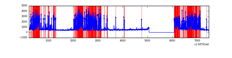 Red curve is a Poisson curve with rate = median count rate of data. |