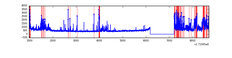 Red curve is a Poisson curve with rate = median count rate of data. |