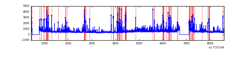 Red curve is a Poisson curve with rate = median count rate of data. |