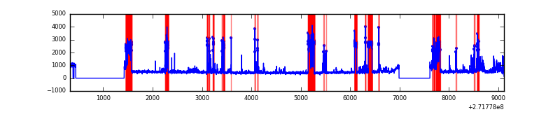 Red curve is a Poisson curve with rate = median count rate of data. |