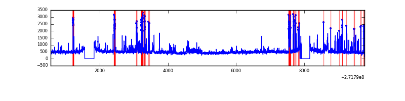 Red curve is a Poisson curve with rate = median count rate of data. |