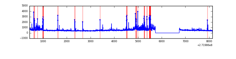 Red curve is a Poisson curve with rate = median count rate of data. |