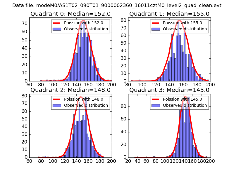 Red curve is a Poisson curve with rate = median count rate of data. |