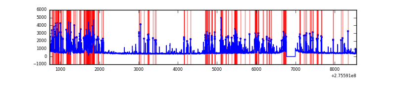 Red curve is a Poisson curve with rate = median count rate of data. |