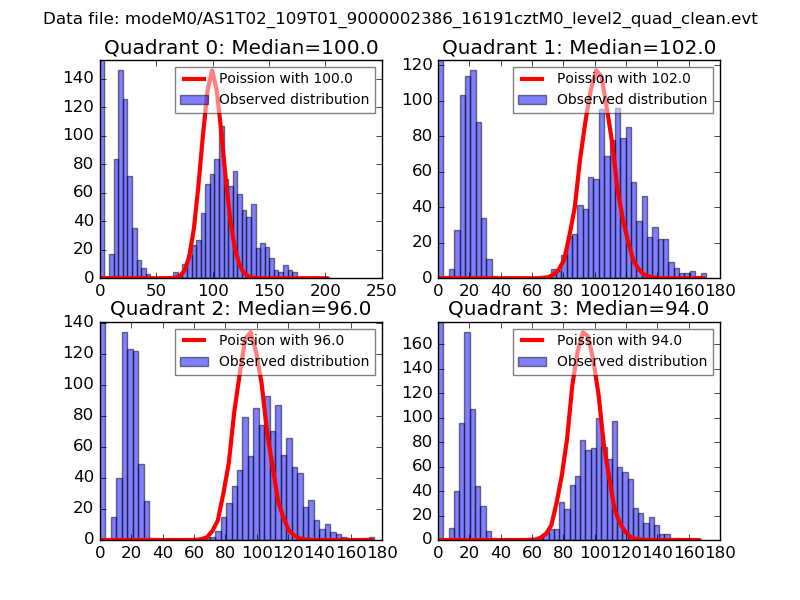 Red curve is a Poisson curve with rate = median count rate of data. |