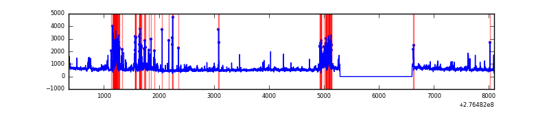 Red curve is a Poisson curve with rate = median count rate of data. |