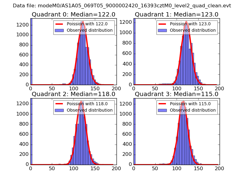 Red curve is a Poisson curve with rate = median count rate of data. |