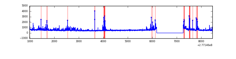 Red curve is a Poisson curve with rate = median count rate of data. |