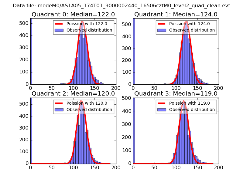 Red curve is a Poisson curve with rate = median count rate of data. |