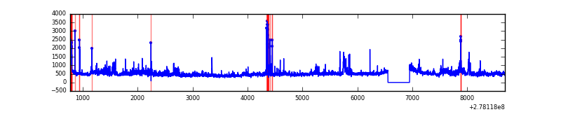 Red curve is a Poisson curve with rate = median count rate of data. |