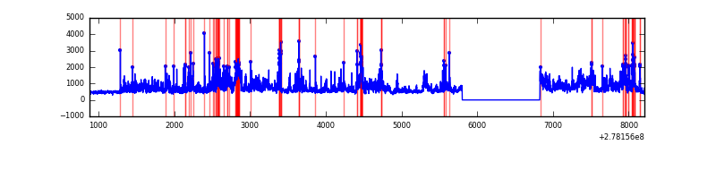 Red curve is a Poisson curve with rate = median count rate of data. |