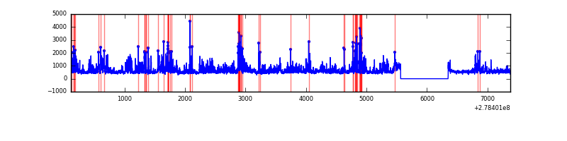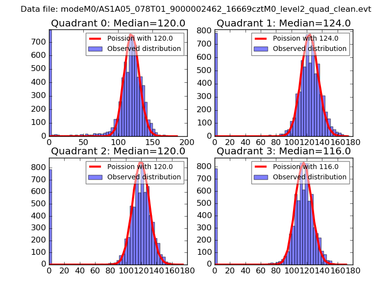 Red curve is a Poisson curve with rate = median count rate of data. |