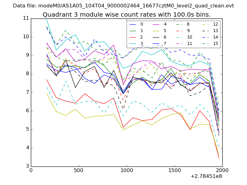 Module-wise count rates for Quadrant A