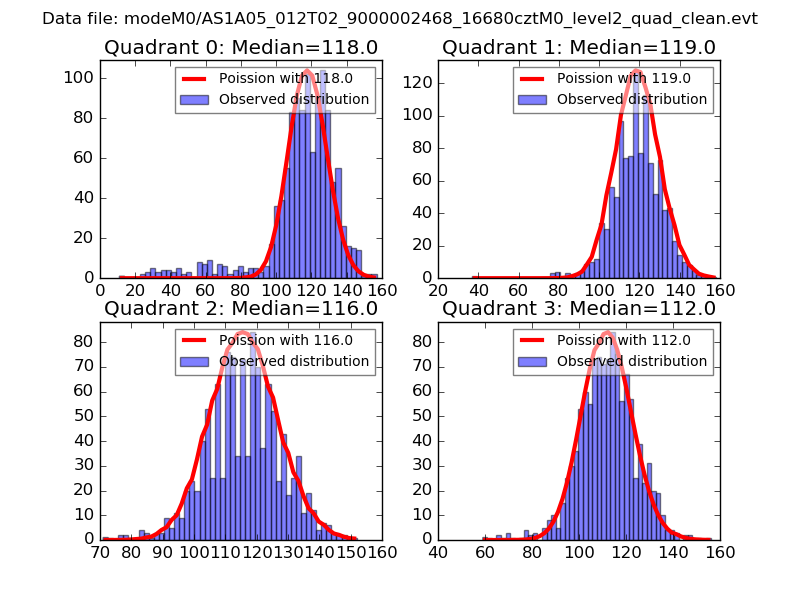 Red curve is a Poisson curve with rate = median count rate of data. |