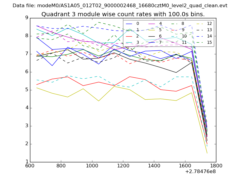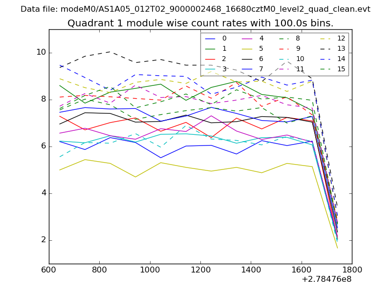Module-wise count rates for Quadrant A