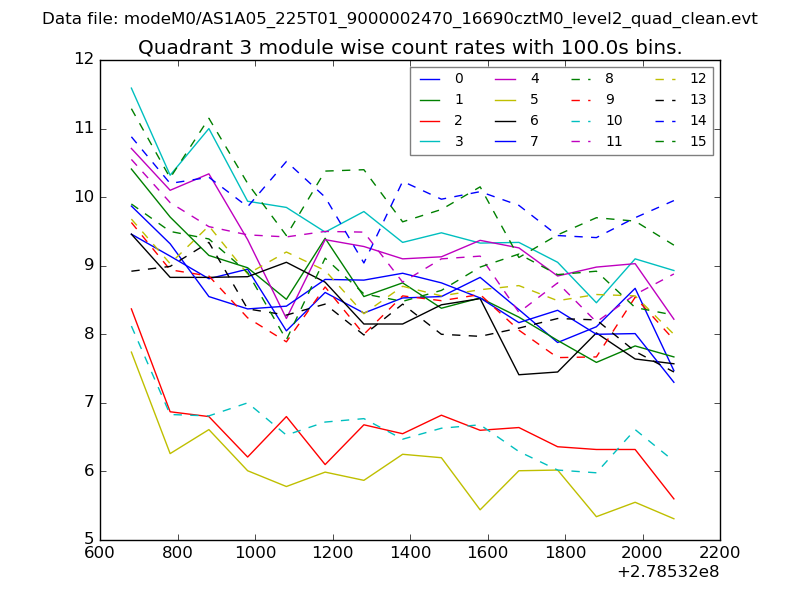 Module-wise count rates for Quadrant A
