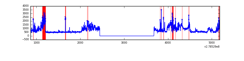 Red curve is a Poisson curve with rate = median count rate of data. |
