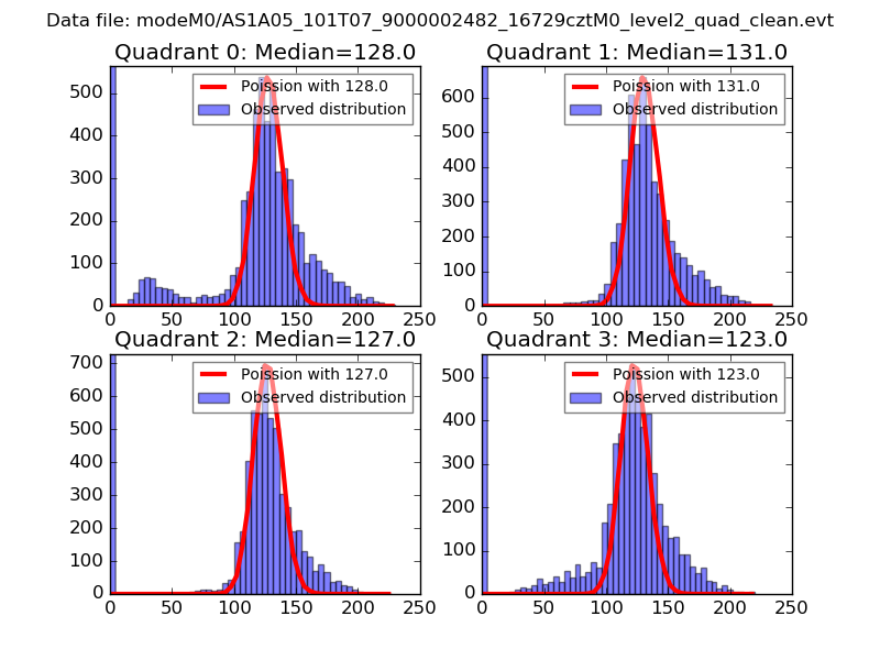 Red curve is a Poisson curve with rate = median count rate of data. |