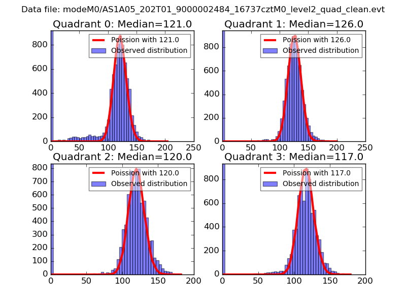 Red curve is a Poisson curve with rate = median count rate of data. |