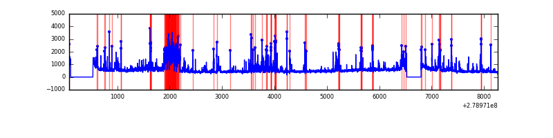 Red curve is a Poisson curve with rate = median count rate of data. |