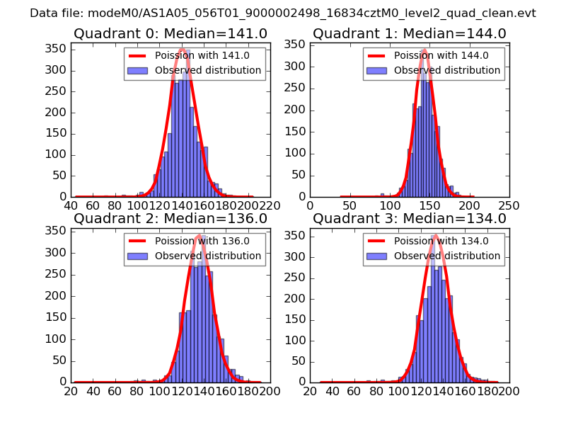 Red curve is a Poisson curve with rate = median count rate of data. |