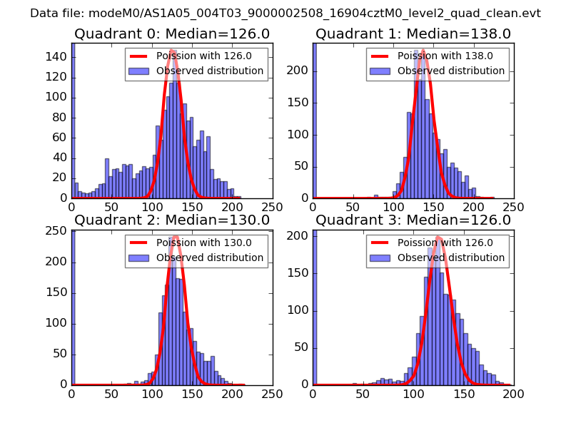Red curve is a Poisson curve with rate = median count rate of data. |