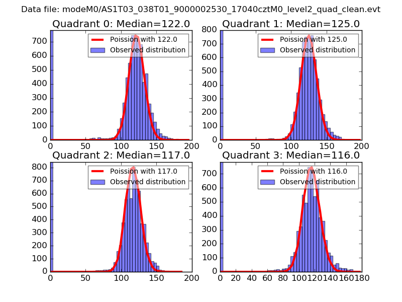 Red curve is a Poisson curve with rate = median count rate of data. |
