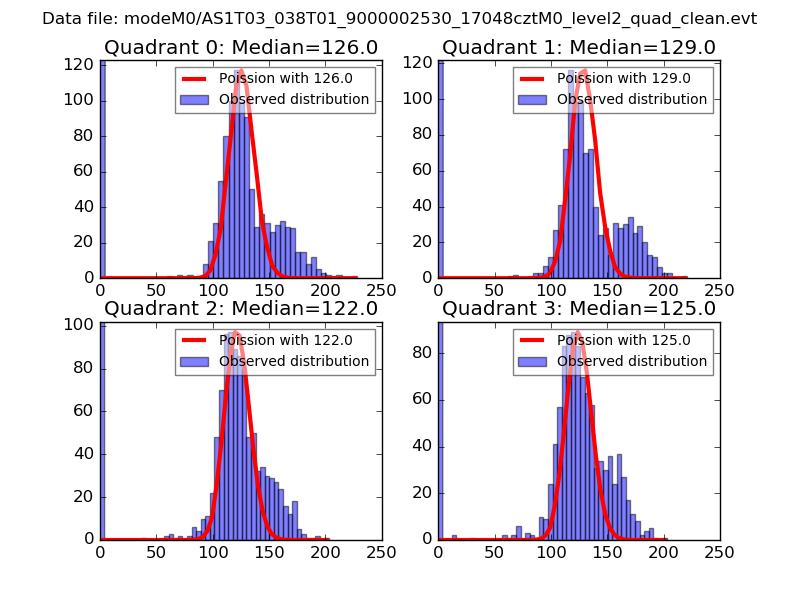 Red curve is a Poisson curve with rate = median count rate of data. |