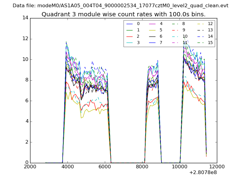 Module-wise count rates for Quadrant A