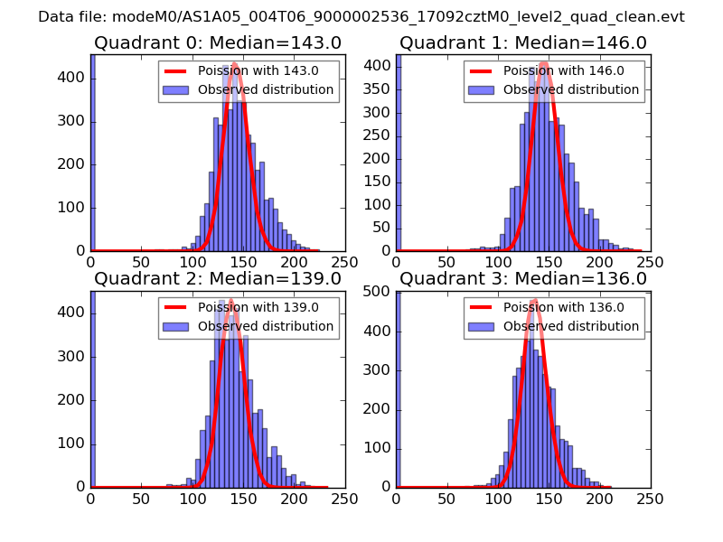 Red curve is a Poisson curve with rate = median count rate of data. |