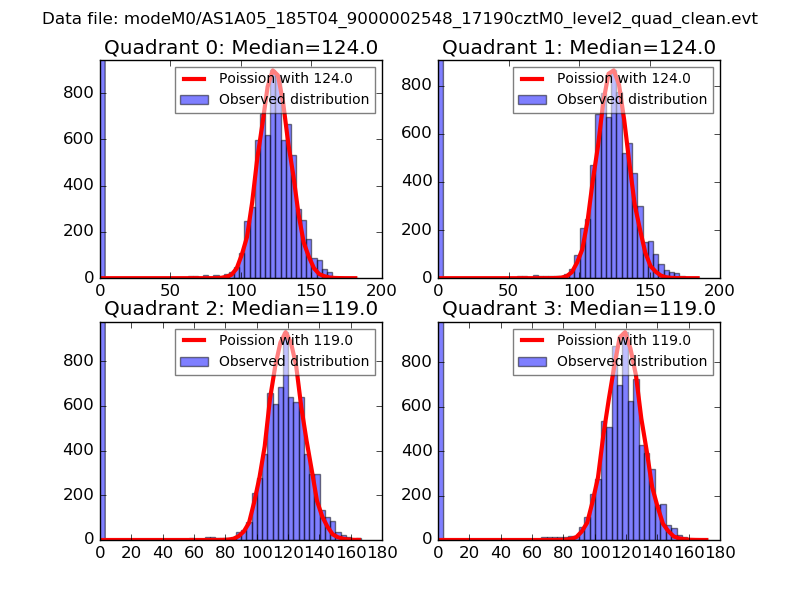 Red curve is a Poisson curve with rate = median count rate of data. |