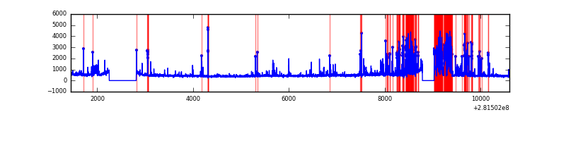 Red curve is a Poisson curve with rate = median count rate of data. |