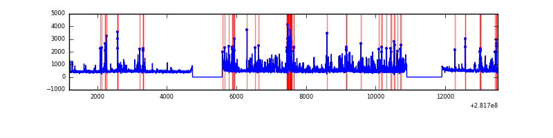 Red curve is a Poisson curve with rate = median count rate of data. |