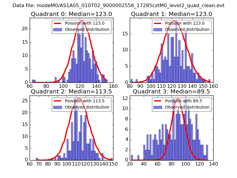 Red curve is a Poisson curve with rate = median count rate of data. |