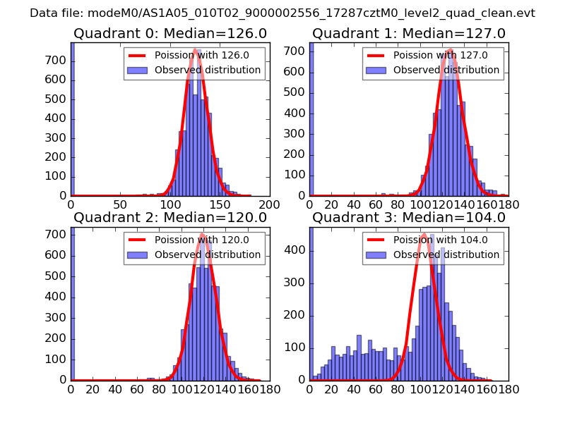 Red curve is a Poisson curve with rate = median count rate of data. |