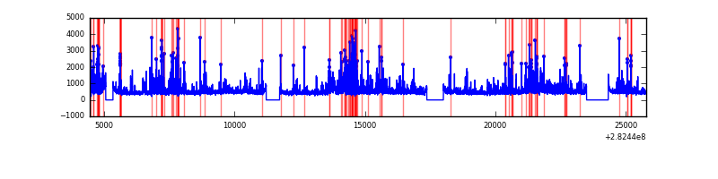 Red curve is a Poisson curve with rate = median count rate of data. |