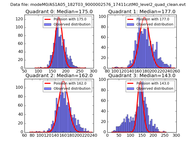 Red curve is a Poisson curve with rate = median count rate of data. |
