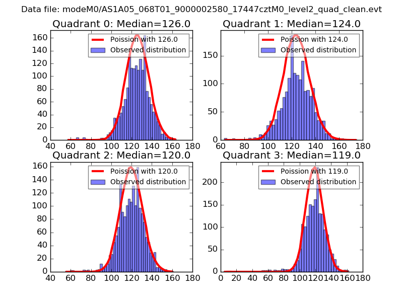 Red curve is a Poisson curve with rate = median count rate of data. |