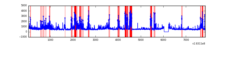 Red curve is a Poisson curve with rate = median count rate of data. |