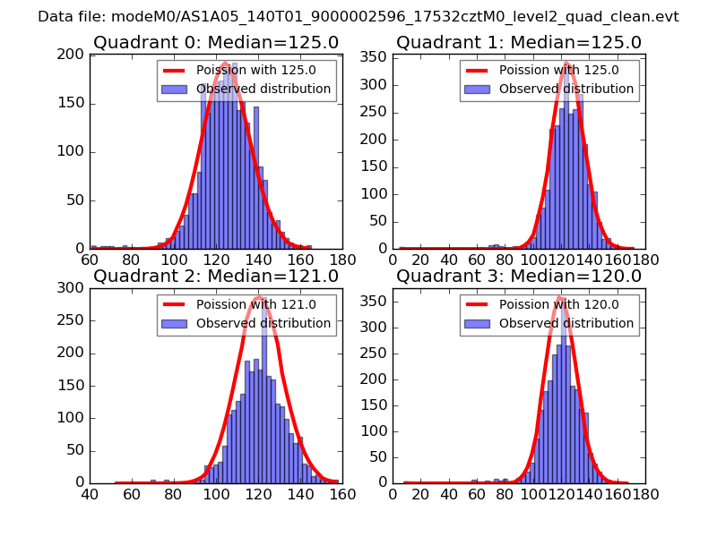 Red curve is a Poisson curve with rate = median count rate of data. |