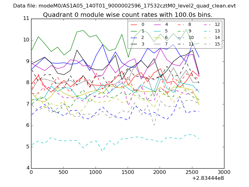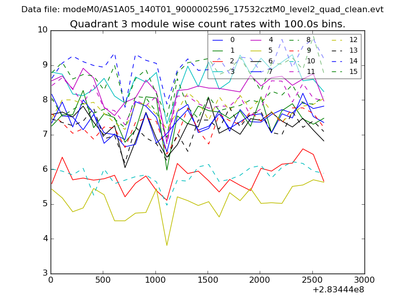 Module-wise count rates for Quadrant A