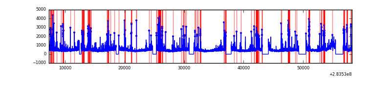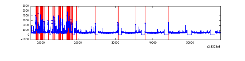 Red curve is a Poisson curve with rate = median count rate of data. |