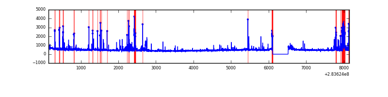 Red curve is a Poisson curve with rate = median count rate of data. |