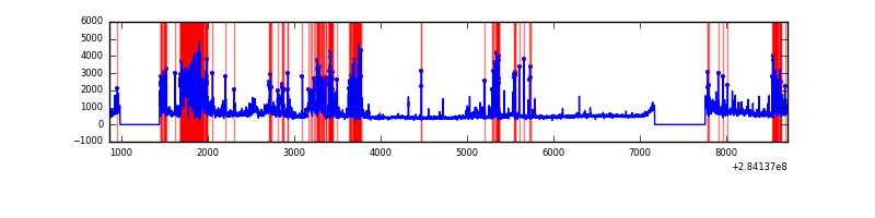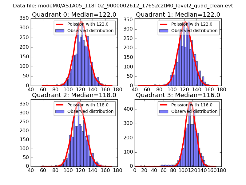 Red curve is a Poisson curve with rate = median count rate of data. |