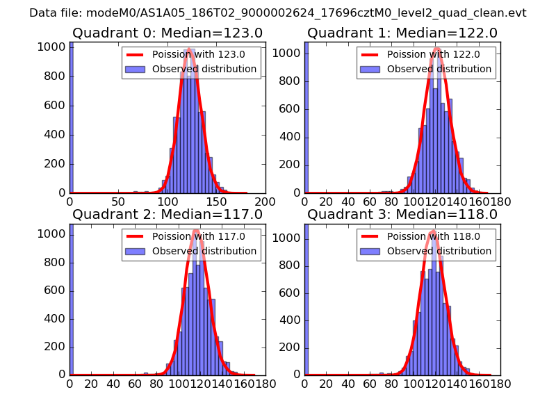 Red curve is a Poisson curve with rate = median count rate of data. |