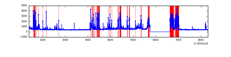 Red curve is a Poisson curve with rate = median count rate of data. |