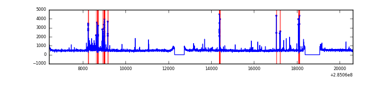 Red curve is a Poisson curve with rate = median count rate of data. |