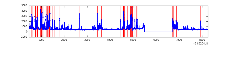 Red curve is a Poisson curve with rate = median count rate of data. |
