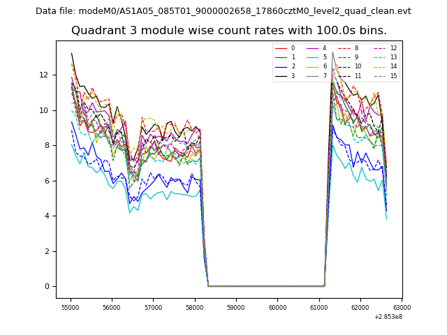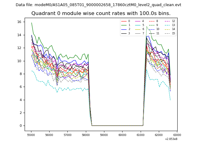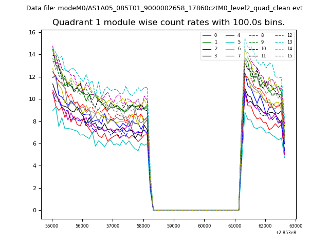 Module-wise count rates for Quadrant A