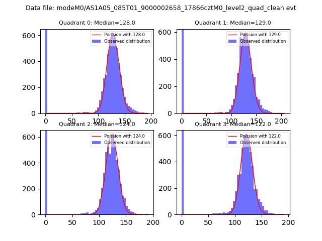 Red curve is a Poisson curve with rate = median count rate of data. |